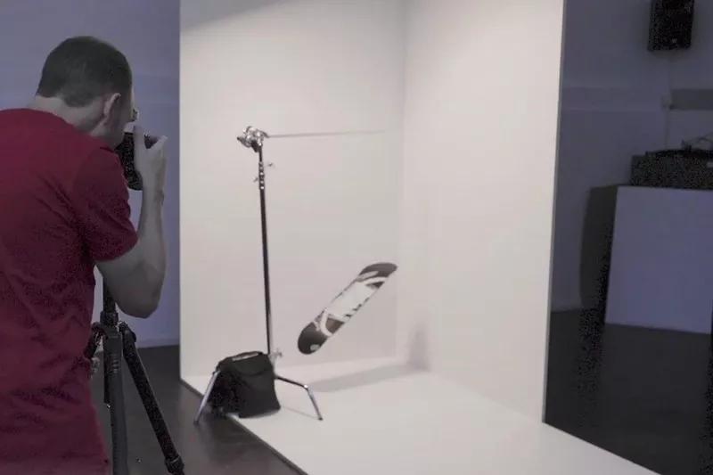 隨后,把拍攝對象和懸吊裝置撤走,保持機位不變,拍攝一張“空場景”的照片: