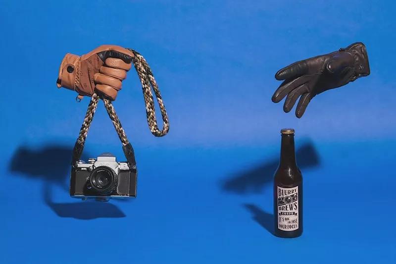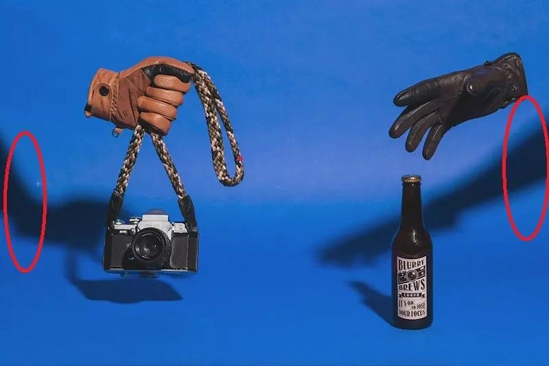 如果沒有合適的細(xì)線或者懶得做懸吊裝置,你也可以戴著手套,抓著物體來拍攝。拍攝流程還是一毛一樣的:找背景——打硬光——拿著拍一張——拍空場景——后期。