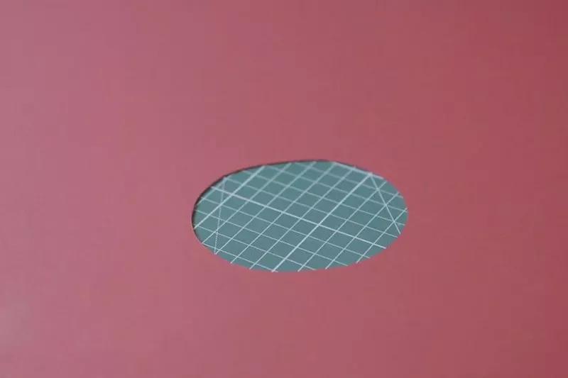 尋找兩塊不同顏色的紙板,在上邊裁出一個比手腕略大的洞: