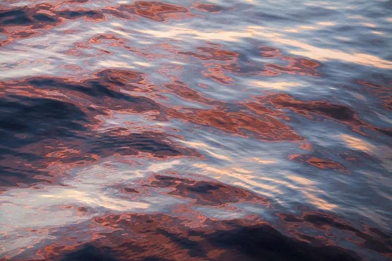 當環(huán)境景物的色彩比較鮮艷、豐富時,你好可以嘗試專注于拍攝水面波紋本身,斑駁的色彩與波紋結合會形成漂亮的抽象圖案:
