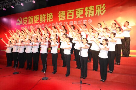 《沒有共產(chǎn)黨就沒有新中國》、《團結(jié)就是力量》、《走向復(fù)興》等一曲曲經(jīng)典的紅色旋律激起了全體德百員工的共鳴,抒發(fā)了廣大員工熱愛黨、熱愛祖國、熱愛企業(yè)的紅色情懷,充分展示了德百人積極向上、昂揚奮進的良好精神風(fēng)貌,深刻表達了對黨、對祖國母親的無限熱愛和美好的祝福。