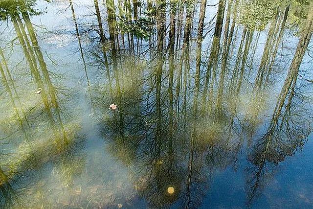 這張構(gòu)圖方法,經(jīng)常被運(yùn)用于倒影攝影中。尋找平靜的水面,以表現(xiàn)倒影為主;同時(shí),又在畫面中保留部分地面景物作為陪襯。