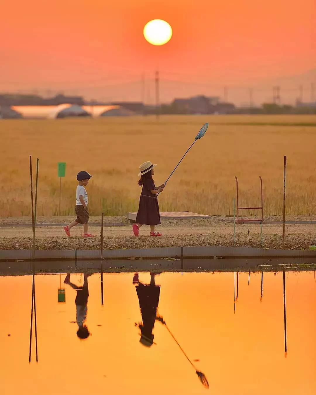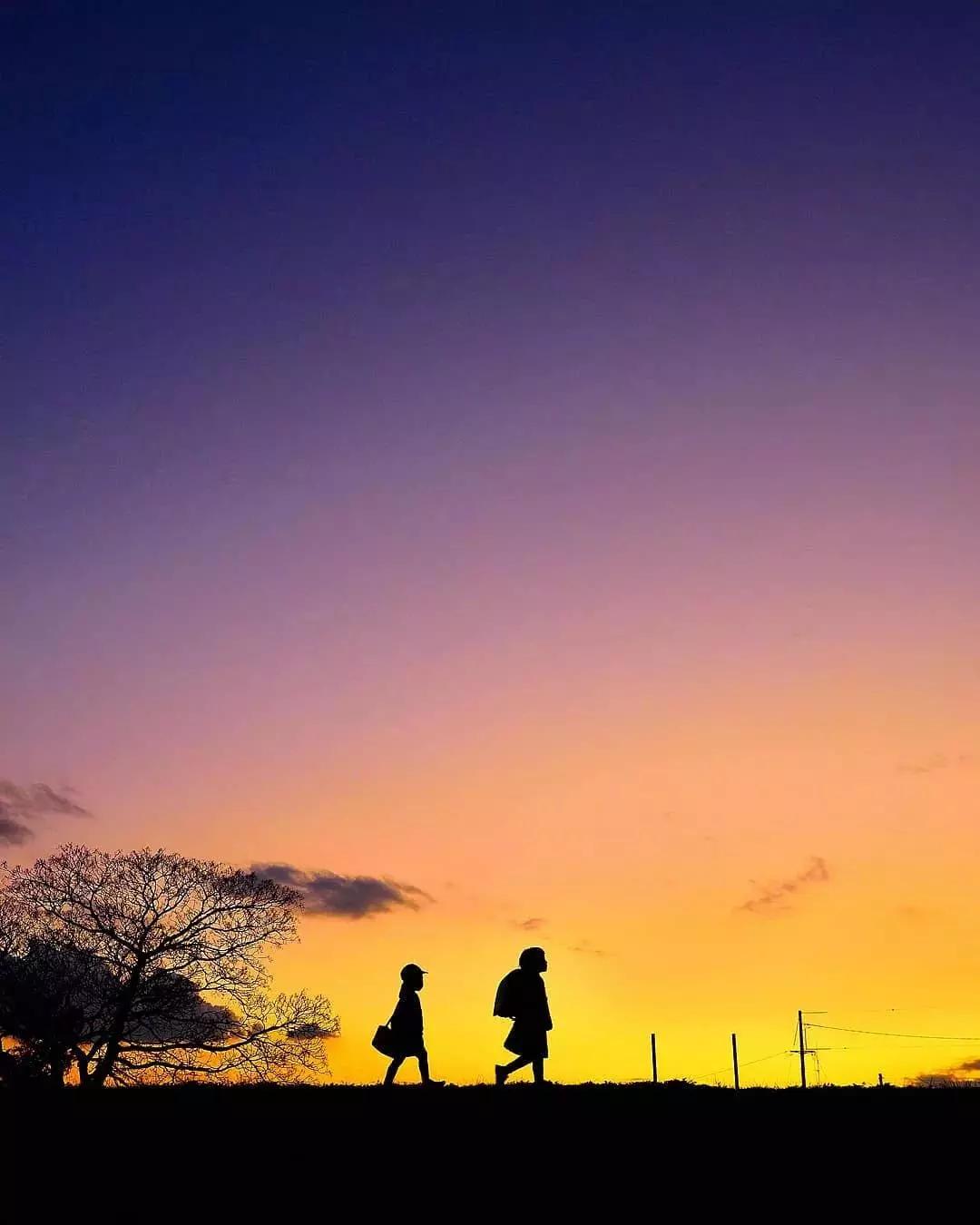 在夢幻般的風(fēng)景下,孩子的背影或者剪影成為了畫面的視覺焦點,這是梶原紀(jì)之作品的最大特點。