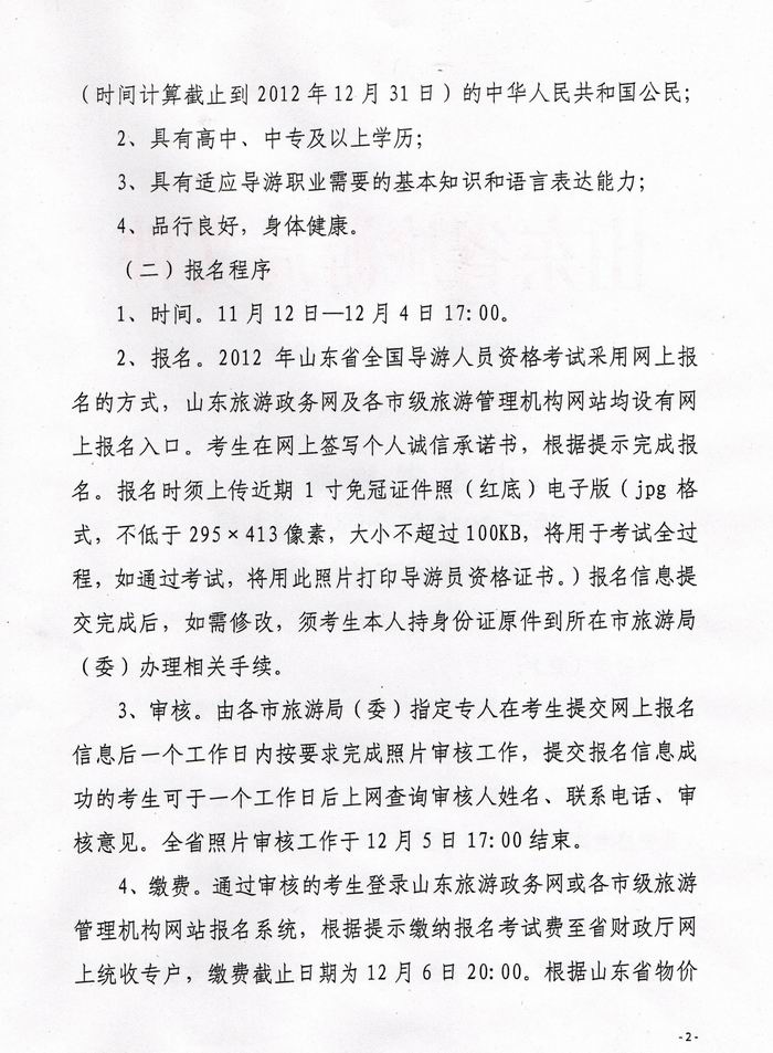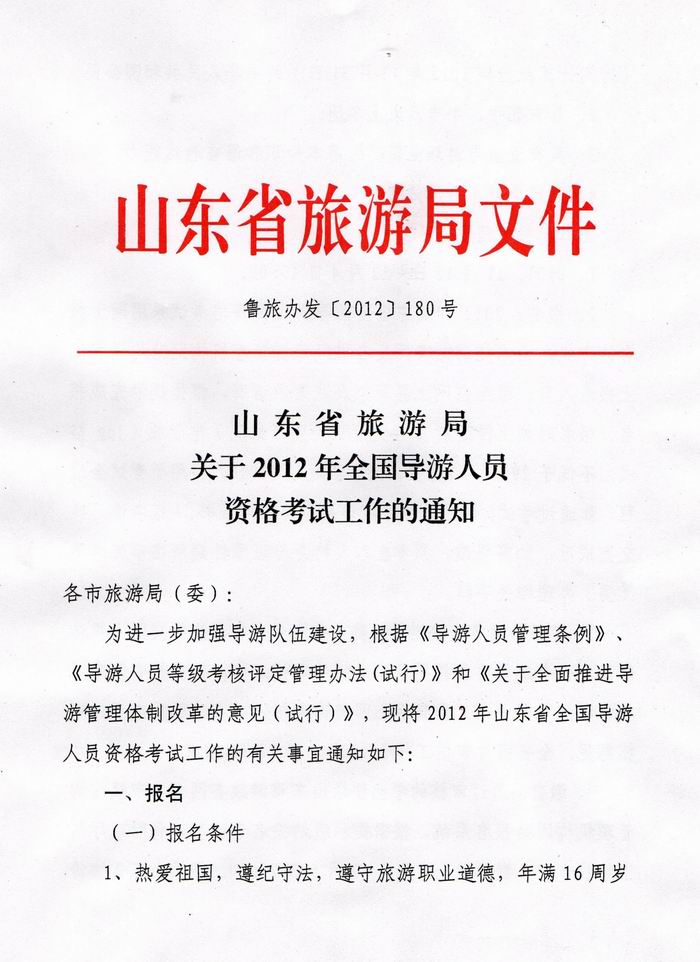 關(guān)于2012年全國(guó)導(dǎo)游人員資格考試的通知