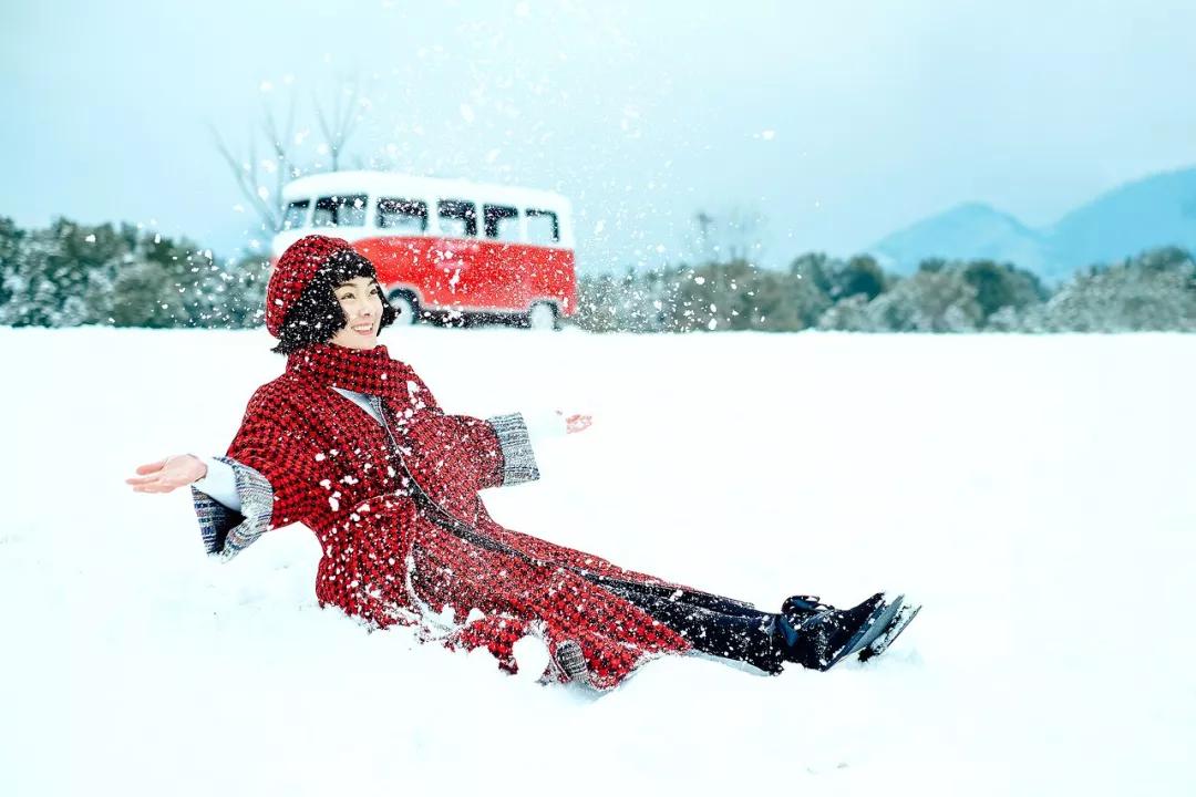 也可以直接躺在雪地里,攝影師鏡頭放低,只將半邊臉納入鏡頭。