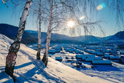 1、登上觀景臺飽覽禾木晨曦,晨光普照在靜謐的禾木,坐馬拉爬犁看禾木日出,民族服飾體驗拍照;