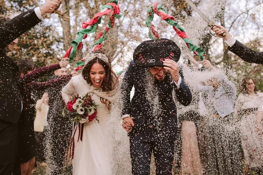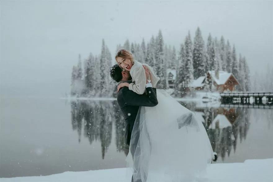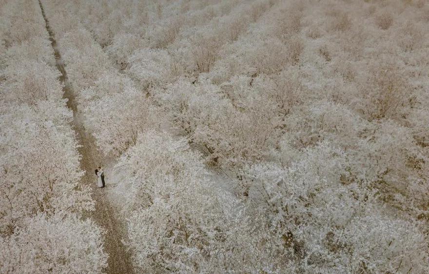 在這些照片中,新婚夫婦們?cè)谠?、在古堡里肆意奔跑?/span>在漫天雪花中緊緊相擁,在落日余暉下留下甜蜜的剪影,在開滿花的樹林攜手漫步……盡情展露幸福的淚水和喜悅的笑容。