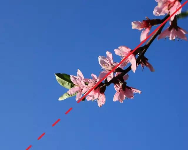 通過對角線構圖,延伸的花枝自然地填充了整個畫面,顯得充實、飽滿而又不失活潑。