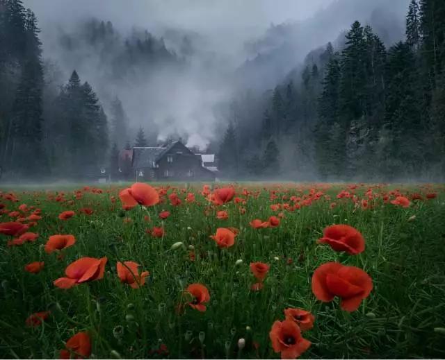 1、能夠起到引導(dǎo)線效果的前景。比如,下圖中的花,觀看者會(huì)通過(guò)花的軌跡一路看去,最后到達(dá)遠(yuǎn)處的房子。