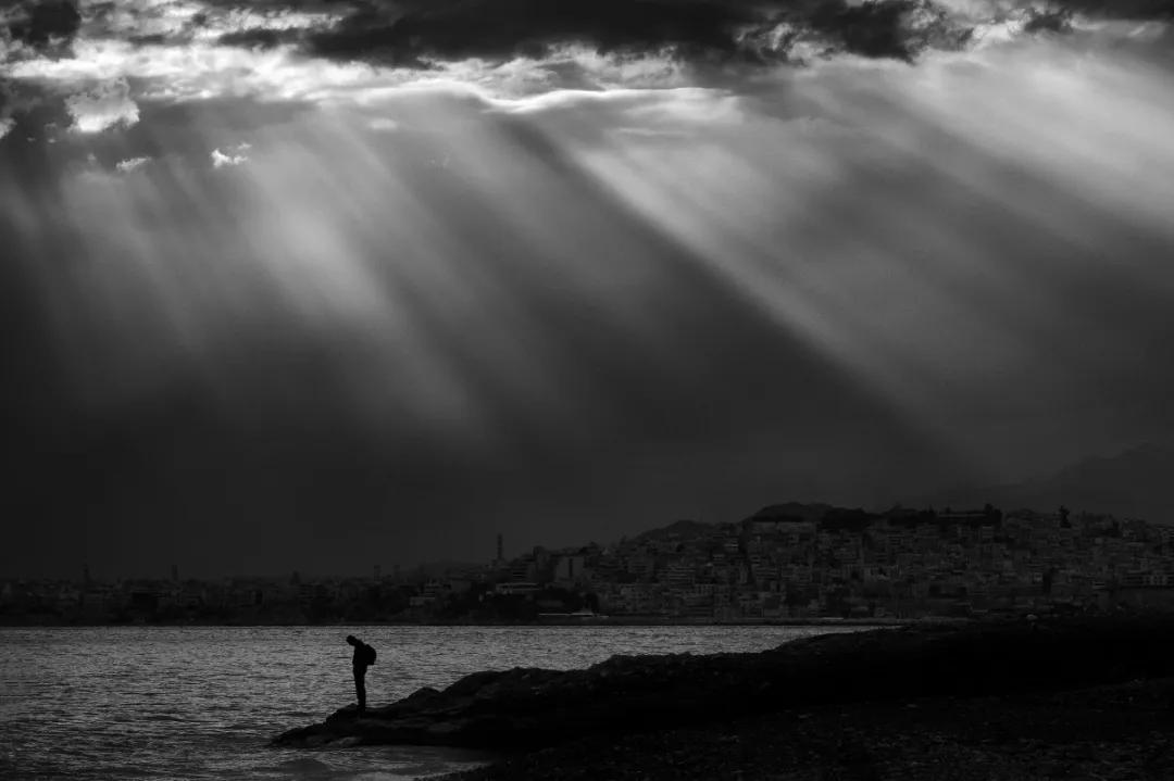 當(dāng)拍攝黑白風(fēng)景照片時(shí),如果你經(jīng)常覺(jué)得你的黑白照片中天空顯得過(guò)于平淡,一定要注意尋找「具有動(dòng)感的天空」 ,例如抓住云層之間錯(cuò)落形成最具張力效果的瞬間,或是陽(yáng)光透過(guò)云層的傾瀉。