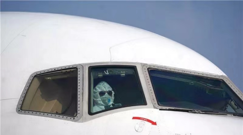 1月28日,在武漢天河國際機場,一架貨運飛機駕駛員將飛機停至卸貨區(qū)。