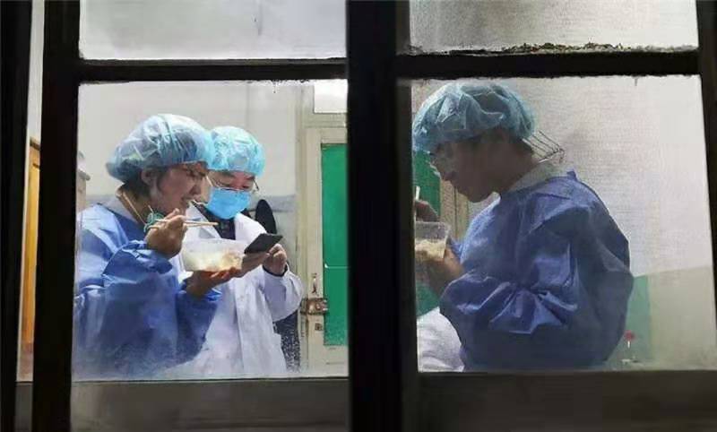 1月24日晚,蘭州大學(xué)第一醫(yī)院的一線醫(yī)護人員在吃年夜飯。