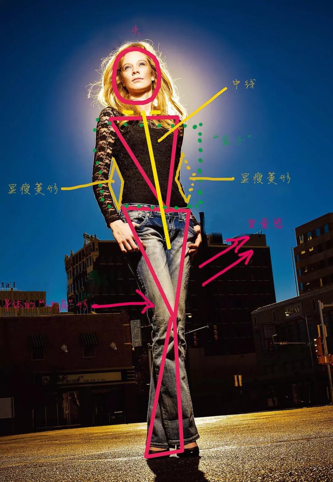 男人以正面的角度面對相機(jī),給人一種高大、寬厚、輪廓清晰的感覺。但對于女人來說,攝影師要做的則是使她們看起來瘦一點(diǎn),再瘦一點(diǎn),最好可以瘦 得像一支鉛筆。