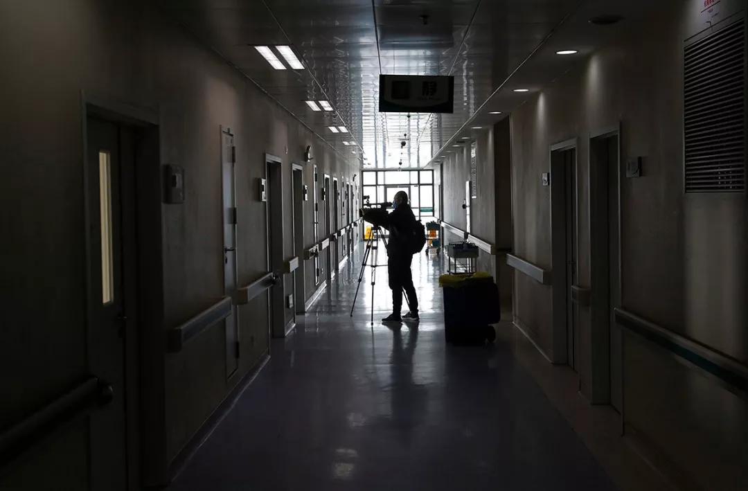 協(xié)和醫(yī)院西院新冠病房開始投用前一小時,一位媒體老師在用攝像機(jī)記錄著病房。