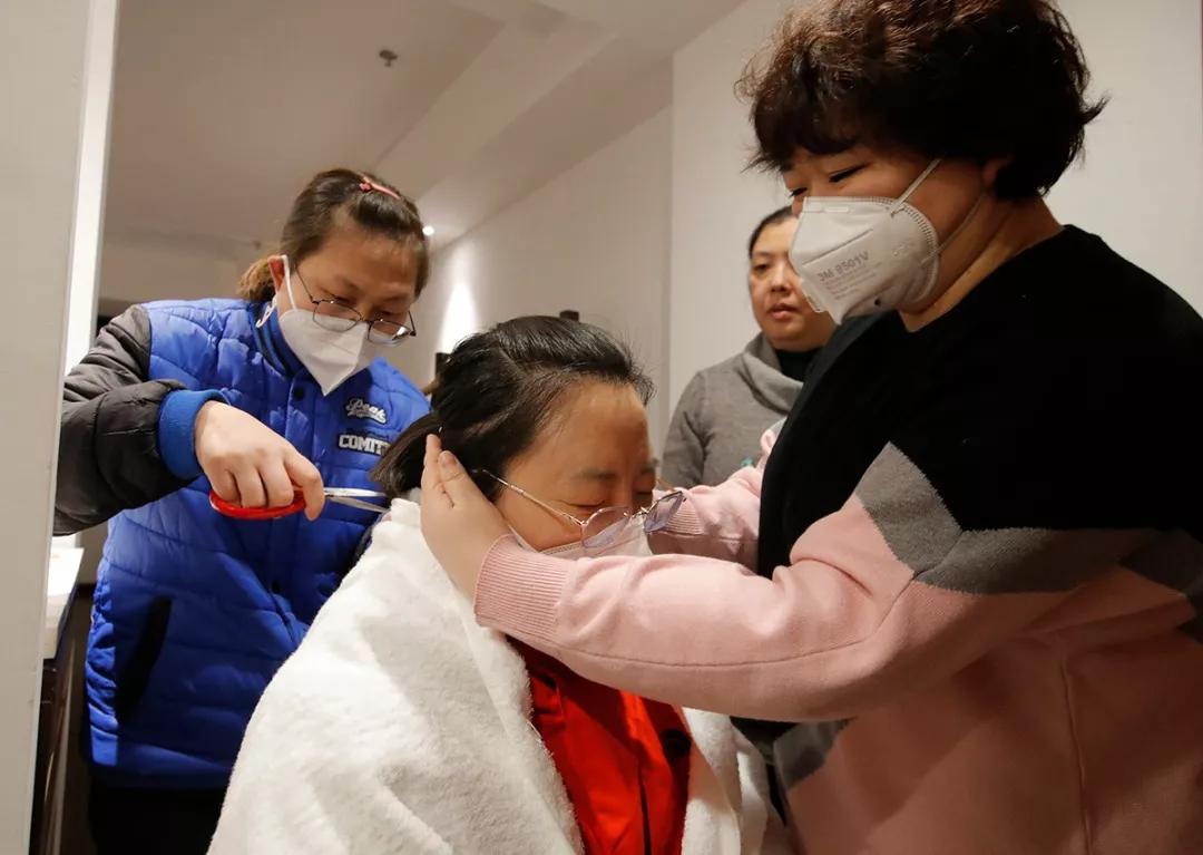 北京醫(yī)療隊到達(dá)后的第二天,由于就要穿著防護(hù)服進(jìn)行工作,宣武醫(yī)院的一位護(hù)士剪掉了自己的長發(fā)。
