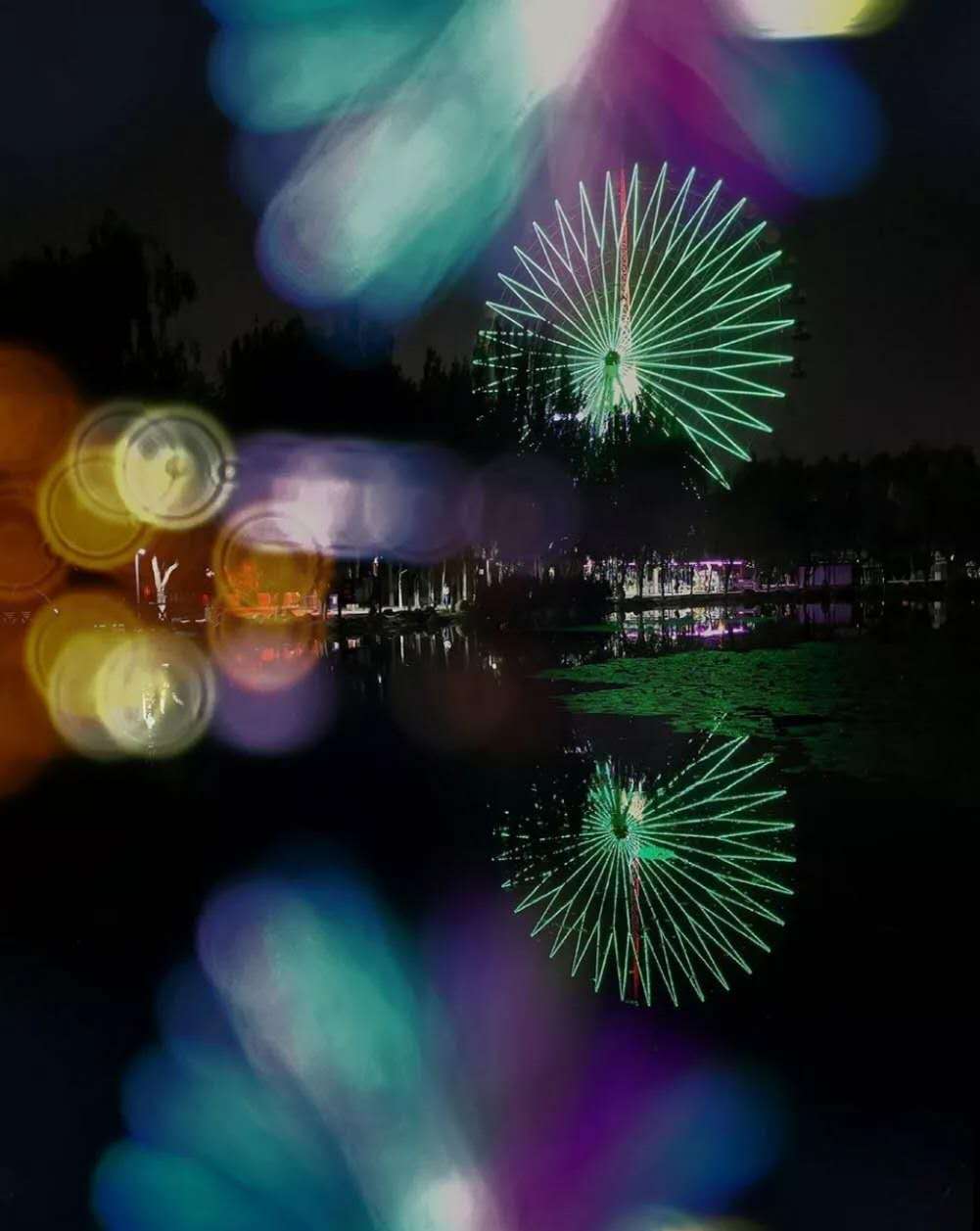 夜景時(shí)多次曝光的應(yīng)用。多重曝光技法,在夜間攝影里也有很重要的應(yīng)用。晚上的燈光漂亮,但天空是片漆黑;黃昏的天空很美,但燈泡卻沒打開。而用雙重曝光,你就可以二者兼顧了。先拍一張日落的鮮艷天空,和漆黑的剪影化地面;再拍一張入夜后華麗燈火和漆黑夜空,然后把它們疊加一起即可。多重曝光在夜景中的另一個(gè)應(yīng)用,是在畫面中添加散景效果,操作很簡單,拍一張正常的夜景,再專門拍一張散景,進(jìn)行疊加即可。