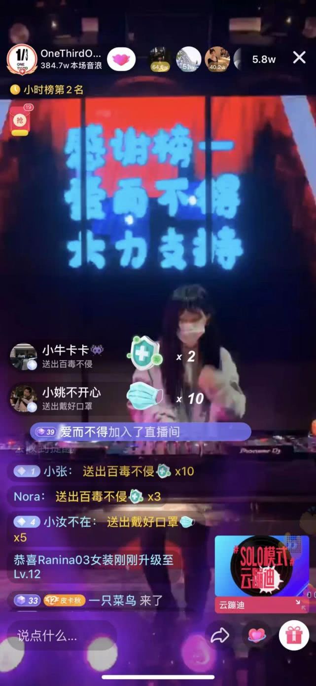 趁著2月14日情人節(jié),ONETHIRD在抖音上發(fā)起了“口罩表白日”的活動(dòng)。除了日常DJ打碟之外,他們迅速搜集了幾百?gòu)堈掌鸵曨l,展現(xiàn)用戶們?cè)诳谡稚蠈?xiě)下的表白情話。這是在6天單純的DJ打碟之后,團(tuán)隊(duì)在幾個(gè)小時(shí)內(nèi)策劃并落地執(zhí)行的新內(nèi)容?!斑@幾天最大的挑戰(zhàn),就是如何在保障直播間粉絲多的同時(shí),刷禮物的人也要多?!?