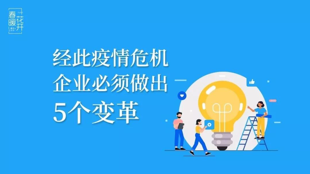 新冠疫情給每個企業(yè)帶來巨大的危機,只有那些正確認(rèn)知危機并做出徹底改變的企業(yè),才能轉(zhuǎn)危為機,成為真正的強者。如何把疫情危機,變成企業(yè)自我變革升級的契機,需要企業(yè)做出5個方面的變革。