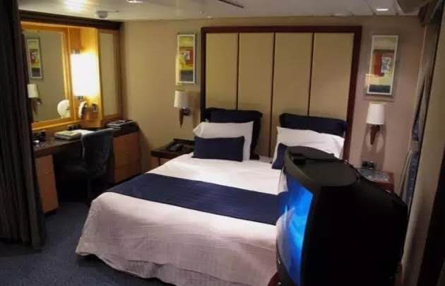 內(nèi)艙房的構(gòu)造類似于一般商務(wù)酒店的標(biāo)準(zhǔn)間,房間位于郵輪的內(nèi)部,沒有窗戶,面積較小,在10~16m2。雖然內(nèi)艙房面積較小,但浴室、衣櫥、客廳和梳妝臺(tái)等設(shè)施一應(yīng)俱全,兩張單人床可合并成為大床。內(nèi)艙房會(huì)運(yùn)用多種裝室內(nèi)裝修效果如通過鏡子、淡色墻紙、落地?zé)簦踔良俅昂焷硎箍臻g顯得更開闊些。有很多偏愛內(nèi)艙房的郵輪旅客看重其價(jià)格較其他房型要便宜一些,隔音和遮光效果好,性價(jià)比高。