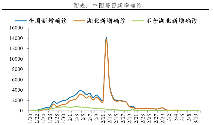 中國(guó)疫情正得到有效控制,從發(fā)電量、客運(yùn)量等數(shù)據(jù)看,2月中下旬以來國(guó)內(nèi)經(jīng)濟(jì)活動(dòng)在快速恢復(fù)。截至3月16日,武漢以外連續(xù)5天無境內(nèi)新增,武漢新增確診已連續(xù)6天保持在個(gè)位數(shù)。從高頻數(shù)據(jù)看,3月前17天六大電廠日均耗煤量較2月環(huán)比增長(zhǎng)27.7%,前15天商品房日均成交面積較2月環(huán)比增長(zhǎng)193%,前15天全國(guó)日均客運(yùn)量較2月環(huán)比增長(zhǎng)22.5%。國(guó)家發(fā)改委3月17日表示,除湖北等個(gè)別省份外,全國(guó)其他?。▍^(qū)、市)規(guī)模以上工業(yè)企業(yè)復(fù)工率均已超過90%,其中浙江、江蘇、上海、山東、廣西、重慶等已接近100%;貨運(yùn)也已正?;F路裝車數(shù)已恢復(fù)到正常水平,民航、港口、水運(yùn)均正常運(yùn)營(yíng);3月16日調(diào)度發(fā)電量達(dá)178億千瓦時(shí),明顯高于2月底的162億千瓦時(shí),上升9.9%。