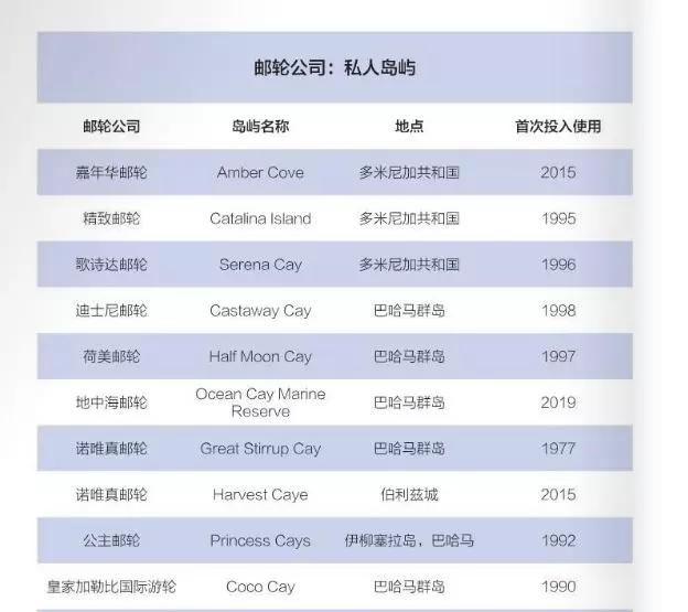 郵輪公司的私人島嶼幾家經(jīng)營巴哈馬/加勒比海航線的郵輪公司都設(shè)有“私人島嶼沙灘日”行程。諾唯真郵輪在1977年購買了一個此前為軍事哨所的島嶼,引領(lǐng)了郵輪公司購買私屬島嶼的新趨勢。到目前為止,諾唯真已經(jīng)花費(fèi)數(shù)百萬美元用于升級島上設(shè)施。