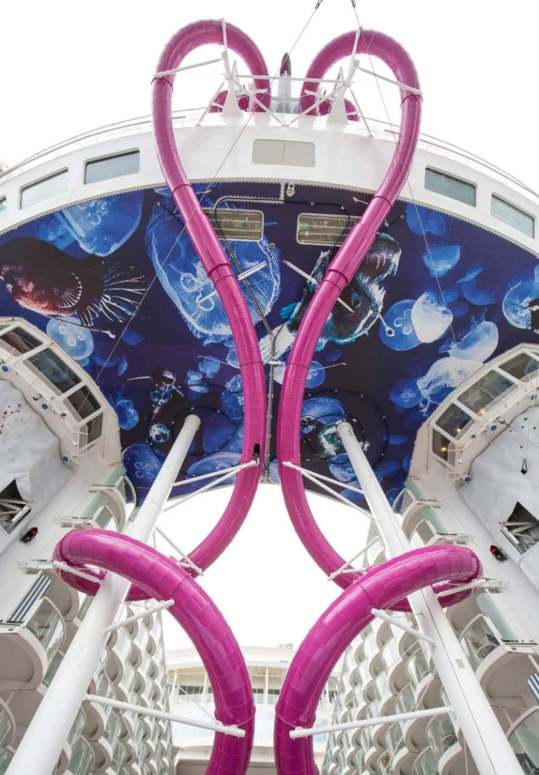 “海洋和諧號”是第一艘考慮到滑水道設(shè)計(jì)的皇家加勒比郵輪。2016年1月,皇家加勒比在“海洋自由號”上進(jìn)行滑水道測試,然后在海洋和諧號上實(shí)現(xiàn)。