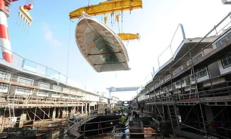 作為造船人,對最大郵輪的偏好是不言而喻的。因?yàn)榇笫鞘艿胶芏嘁蛩叵拗频?,有技術(shù)上的,現(xiàn)有規(guī)范方面的,也有設(shè)備條件和自然條件的限制。所以,海洋綠洲級郵輪,只在芬蘭土爾庫的船廠(現(xiàn)在的MEYER Turku)和STX法國船廠(STX France)(現(xiàn)在的法國大西洋船廠Chantiers de l’Atlantique)建造過。著名的德國邁爾船廠(Meyer Werft) 由于位于埃姆斯河下游,2002年9月之后船只可以通過的水深才達(dá)到8.50米,寬度為63.5米。而海洋綠洲級郵輪的最大寬度為66米。法國大西洋船廠為了建造海洋綠洲級郵輪,也專門添置了設(shè)備。