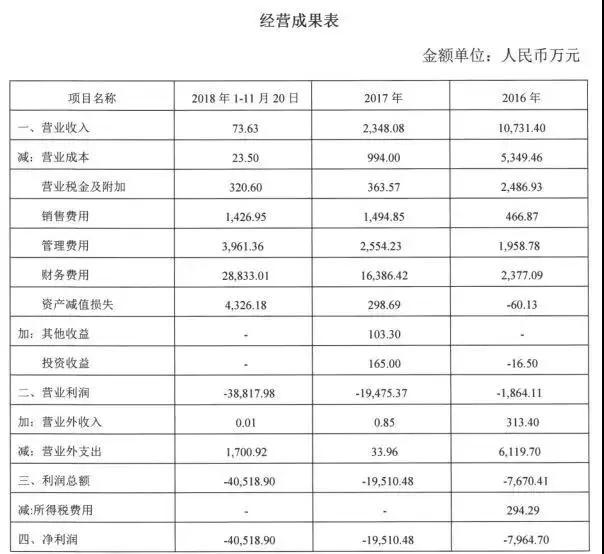 根據(jù)利得清算事務(wù)有限公司針對(duì)其公布的《擬破產(chǎn)財(cái)產(chǎn)的清算價(jià)值資產(chǎn)評(píng)估報(bào)告》顯示,維多利亞公司在2016—2018年(截至該年11月20日)的營(yíng)業(yè)收入依次為10731.40萬元、2348.08萬元、73.63萬元,凈利潤(rùn)依次為-7964.70萬元、-19510.48萬元、-40518.90萬元。從2016年開始,大乳山景區(qū)的營(yíng)收開始斷崖式下跌,凈利潤(rùn)虧損主要源于高昂的財(cái)務(wù)費(fèi)用,在2018年財(cái)務(wù)費(fèi)用2.88億元,占4.05億元虧損的70%以上。營(yíng)業(yè)收入嚴(yán)重下滑,管理費(fèi)用(主要是折舊費(fèi)用)和財(cái)務(wù)費(fèi)用奇高不下,使得本項(xiàng)目很快就資金不足,不得不進(jìn)入破產(chǎn)重組。