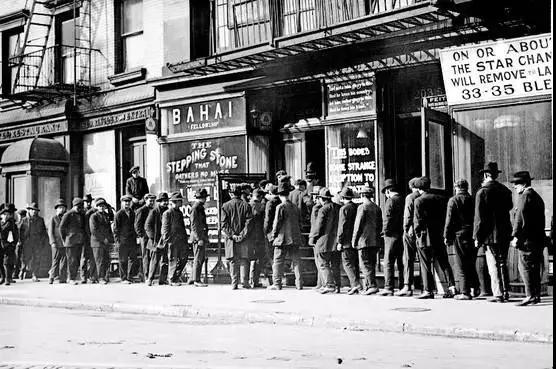 所以,1929年,世界大戰(zhàn)結(jié)束才10年,真正的經(jīng)濟(jì)危機(jī)如約而至。破壞力強(qiáng)悍到世界大戰(zhàn)都只是預(yù)演。美國的工業(yè)水平幾個(gè)月就倒退到19世紀(jì),銀行業(yè)破產(chǎn),410億存款去擠兌60億現(xiàn)金,總統(tǒng)開支票都兌不到紙幣。德國失業(yè)人口加半失業(yè)人口占了總數(shù)的2/3。第一次世界大戰(zhàn)期間,英國咬牙頂住了金本位,等到大蕭條來也也得廢除。從1929年到1933年,全世界再次以為資本主義要結(jié)束了。