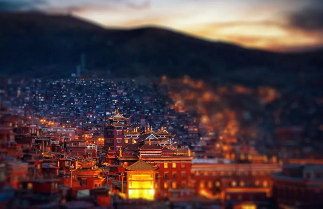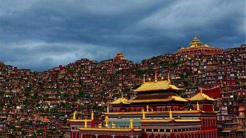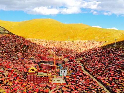 以佛學院的大經(jīng)堂為中心,密密麻麻搭滿了四面的山坡,