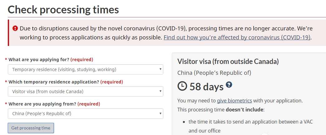 由于疫情的影響導致簽證申請中心持續(xù)關閉,所以簽證受理時間均有延遲。根據加拿大移民局系統(tǒng)查詢,目前顯示臨時訪問簽證審理時間延長至58天,不排除再延長的可能性。