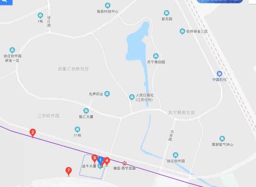 南京的途??偛浚徧K寧總部,以及蘇寧易購總部和蘇寧青創(chuàng)園。