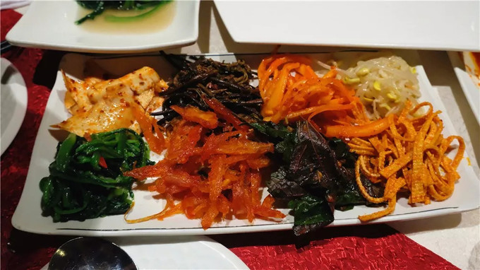 向當?shù)厝舜蚵犻L春的特色餐飲,得知有一家朝鮮美食體驗館,所以有幸近距離接觸到了北朝鮮的女孩。