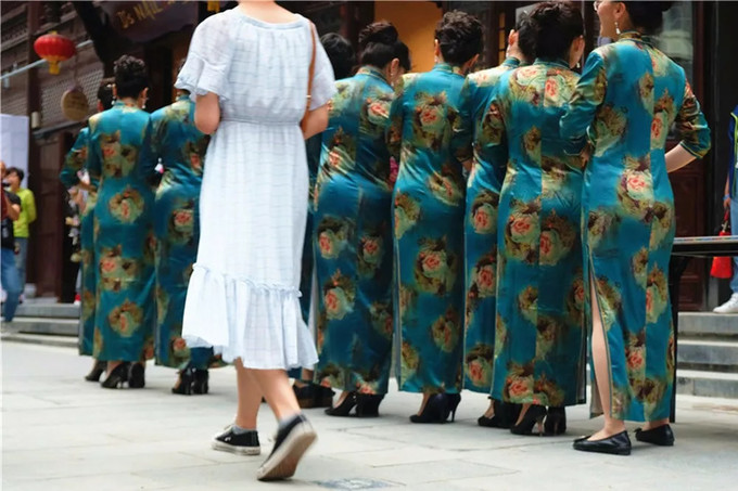 能感受到這里的“慢生活”。宅院、小洋樓、飯館、茶館、客棧、酒吧,都是川渝味道,由于是假日,所以當天有很多歌舞表演,看這些嫵媚多姿的大姐姐們,一個個搖曳多姿,充滿自信。