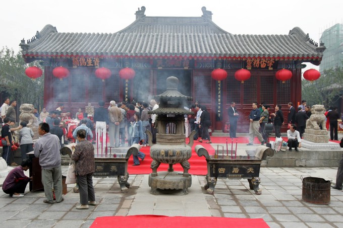 天津有一句老話:先有天后宮,后有天津衛(wèi)??梢娞旌髮m在天津人心目中的地位。這是中國(guó)三大天后宮之一,也是天津現(xiàn)存最古老的建筑。天后宮實(shí)際是老百姓供奉天后娘娘的廟宇,俗稱“娘娘宮”。昔日,天后宮供奉主神,當(dāng)然是天后娘娘。由于歷史原因,天后宮在漫長(zhǎng)的歲月里,形成了佛道混雜、百神聚集的復(fù)雜情況。每年農(nóng)歷三月二十三日,都會(huì)在此舉行盛大的“皇會(huì)”,表演龍燈舞、獅子舞、少林會(huì)、高踐、法鼓、旱船、地秧歌、武術(shù)以及京戲、評(píng)劇、梆子等。