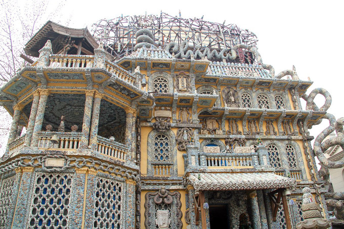 瓷房子是一座用數(shù)萬件古董瓷片裝修而成的法式洋樓,是天津市的地標(biāo)建筑之一。建筑由瓷房主人張連志親自設(shè)計(jì),所用瓷器和瓷片年代從漢代一直跨越到清代,中國(guó)所有種類的官窯、民窯瓷幾乎都可以在這里看到。建造時(shí)使用了20多噸水晶石與瑪瑙,4000多件古瓷器,300多尊歷代石雕造像等,被人們稱為一座價(jià)值連城的“中國(guó)古瓷博物館”。出口所在的小房間有“鎮(zhèn)館之寶”,不要錯(cuò)過了,這間房間不允許照相。