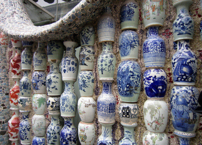 瓷房子建造時(shí)使用了20多噸水晶石與瑪瑙,4000多件古瓷器,300多尊歷代石雕造像等,所用瓷器和瓷片年代從漢代一直跨越到清代,中國(guó)所有種類的官窯、民窯瓷幾乎都可以在這里看到。被人們稱為一座價(jià)值連城的“中國(guó)古瓷博物館”。