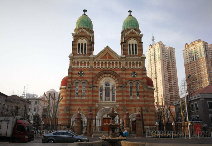 天津市最大的天主教堂,也是天主教天津教區(qū)主教座堂,典型巴洛克式風(fēng)格的建筑。整體建筑呈“品”字形,樓座以黃、紅花磚砌成,上砌翠綠色圓肚型尖頂,檐下為半圓形拱窗。教堂每日早晨舉行宗教活動(dòng),逢星期日及天主教節(jié)日,早晚皆有宗教活動(dòng)。走出西開教堂便是國(guó)際風(fēng)情街,散布其間大大小小的咖啡廳、西餐廳,很有小資味道。