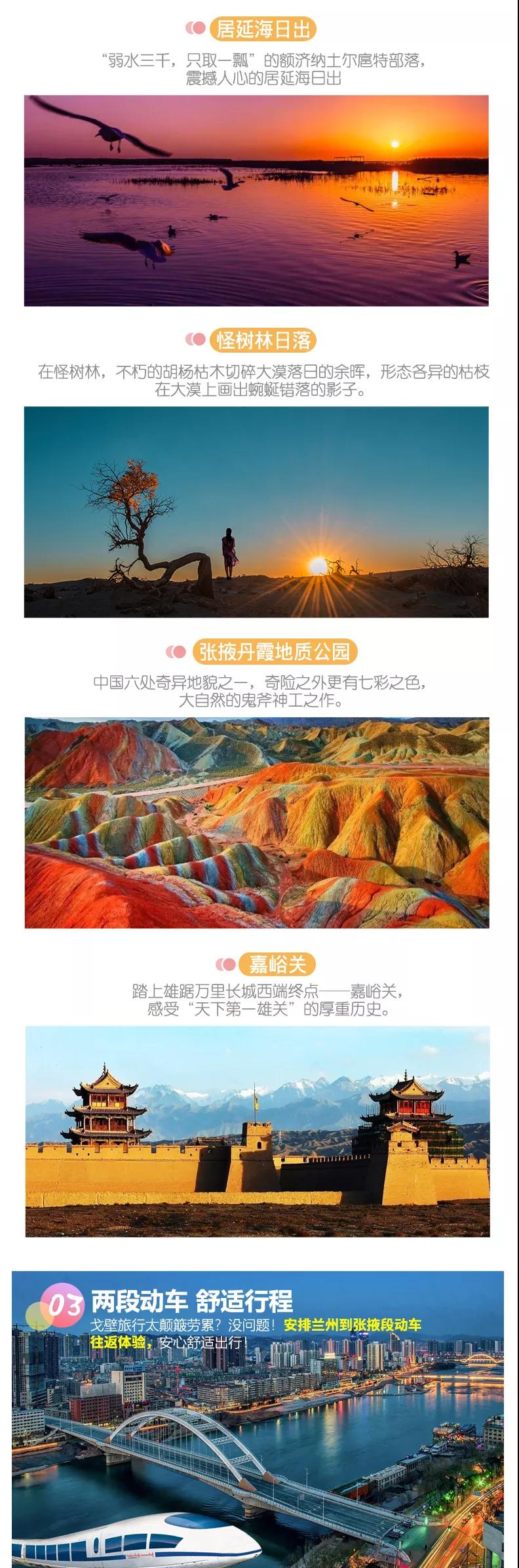 交通:當?shù)芈糜伟褪浚ūWC一人一正座位,車型大小根據(jù)實際人數(shù)安排),且由駕駛經(jīng)驗豐富的司機為您的出行保駕護航;蘭州到張掖、張掖到蘭州往返動車費用【參考車次D2748(12:22-16:49)、D2674 (13:05-17:41)、D2752 (13:31-17:58)、D56(15:03-19:45) 】。