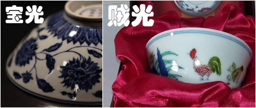 古玩瓷行,早有“寶光”與“賊光”之說(shuō),所謂“寶光”,乃瓷器所發(fā)含蓄之光,內(nèi)斂之光,由內(nèi)而外之光,不刺眼之光;所謂“賊光”,乃瓷器所發(fā)浮躁之光,張揚(yáng)之光,浮于釉面之光,刺眼之光。