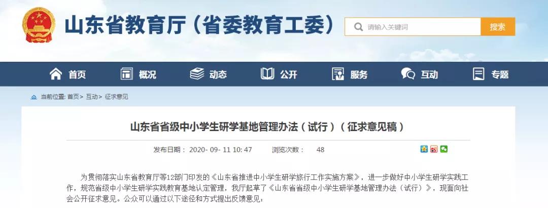 山東省省級中小學生研學基地管理辦法(試行)