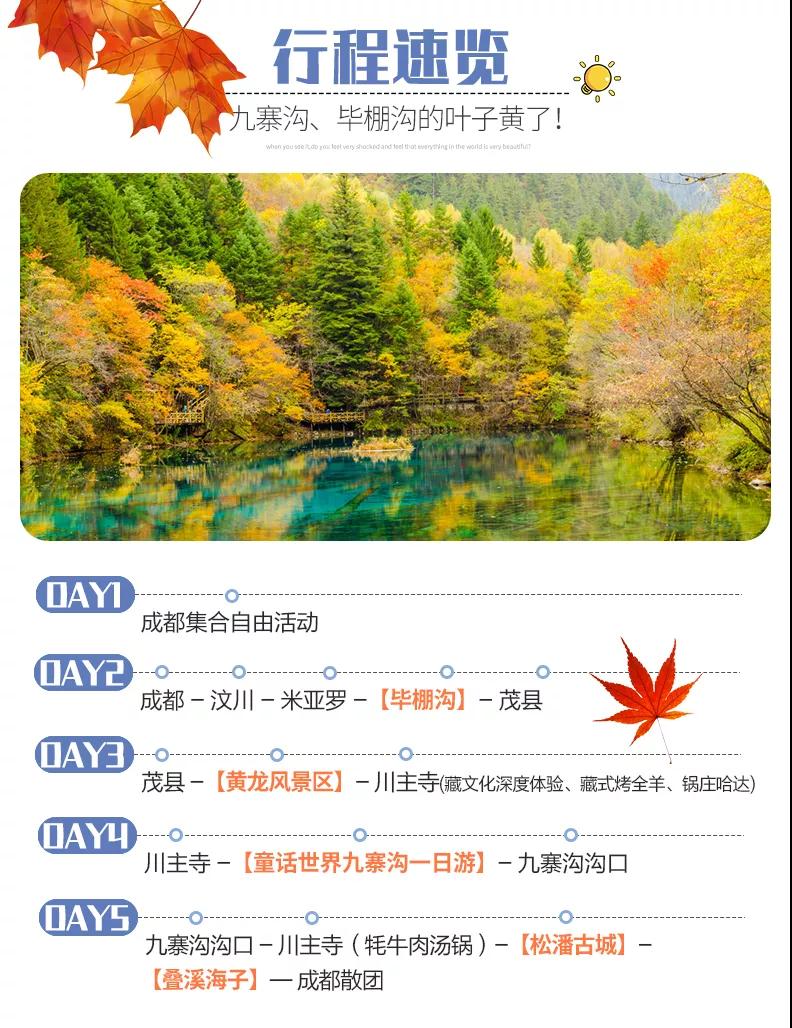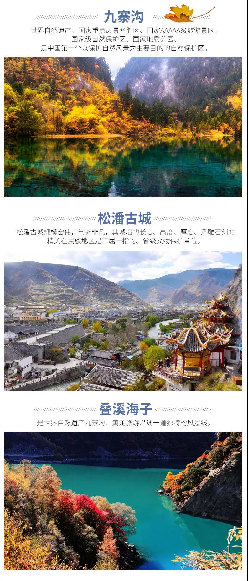 畢棚溝+黃龍風(fēng)景區(qū)+川主寺+九寨溝+松潘古鎮(zhèn)+疊溪海子+汶川+米亞羅+寬窄巷子