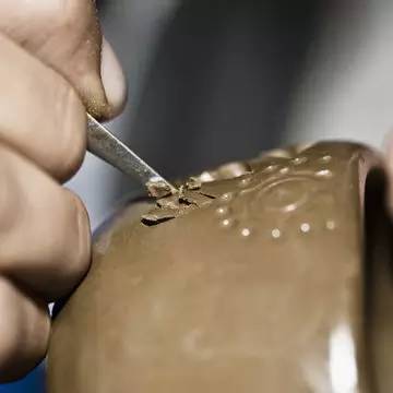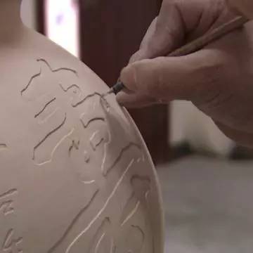 歷經(jīng)了揉泥、拉胚、晾胚、修胚、雕刻、素?zé)⒍啻问┯?、釉燒、火照、開窯等幾十道工序和數(shù)十個(gè)技術(shù)環(huán)節(jié)點(diǎn)。