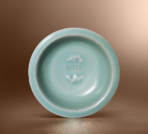 粉青色正是鐵還原的標(biāo)準(zhǔn)色。由于釉藥下注,往往在轉(zhuǎn)折部分釉藥較薄,露出白色胎骨,成一條白線,即就是所謂的“出筋”;這種出筋,也往往出現(xiàn)在凸雕的花紋上。弟窯還有翠青色,濃淡不一;豆綠色,顏色與汝窯器大致相同,往往不易分辨。
