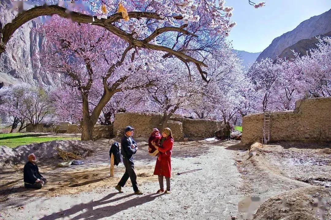 陣陣輕風(fēng)吹過,粉白的花瓣隨風(fēng)飄揚(yáng),開滿杏花的村落,就像是一場色彩的盛宴,伴著圣潔的雪山和蒼涼的峽谷,美得令人窒息。