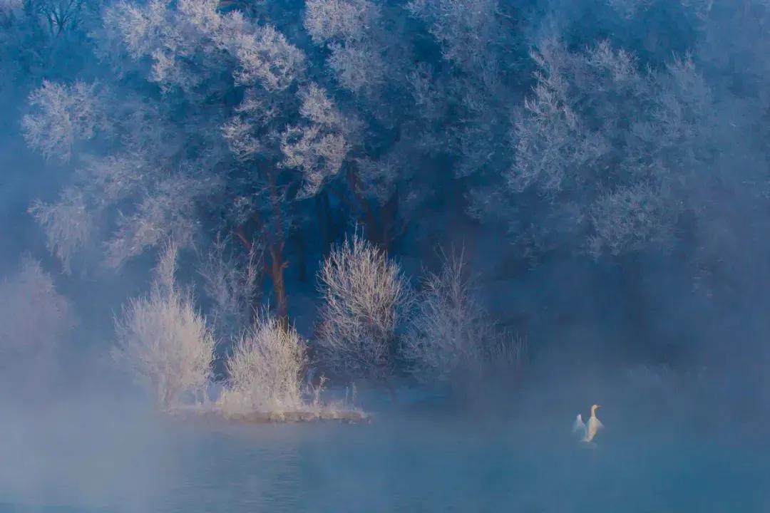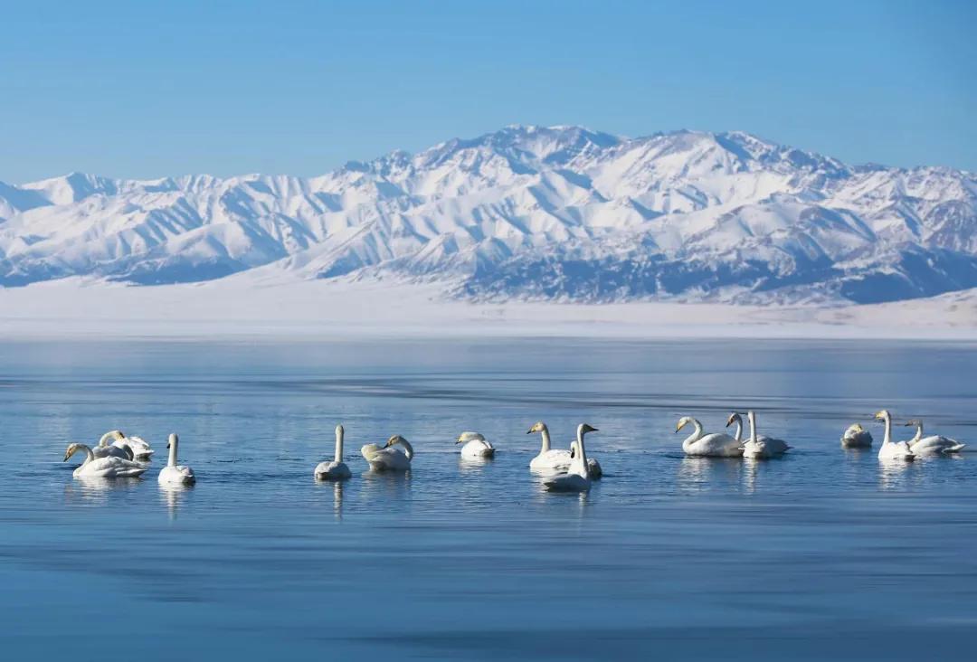 每年的10月下旬大群的天鵝就會從巴音布魯克草原遷徙而來,在這里度過整個(gè)冬天,當(dāng)岸邊的霧凇成了背景,那優(yōu)雅的身姿也就成了最動人的柔情。