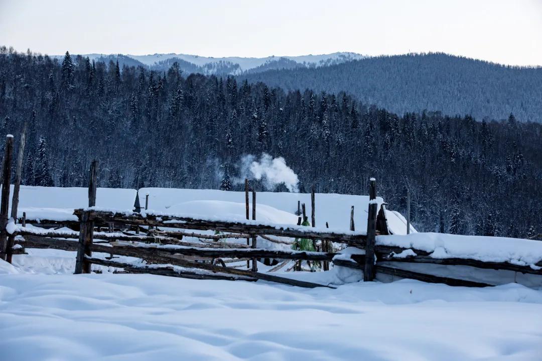 冬季的禾木村沒有斑斕的色彩,有的只是晶瑩純潔的白色。