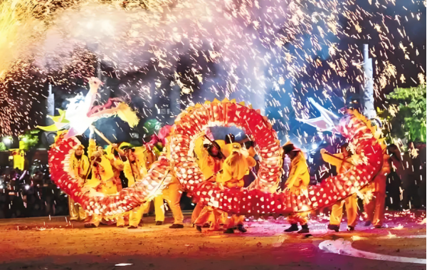 【安徽省】臨近元宵這幾天,淮南市大通區(qū)上窯鎮(zhèn)的街道社區(qū)和鄉(xiāng)村田野里,各種民俗文藝表演一場(chǎng)接著一場(chǎng)。扭花鼓燈、耍龍燈、獅子滾繡球、高蹺、抬閣、花棍、花燈、傘燈、旱船、獨(dú)竿橋等多彩多姿的表演,不僅把新年的氣氛推向高潮,而且也讓十里八鄉(xiāng)的老少爺們領(lǐng)略了獨(dú)特的淮河風(fēng)情文化。淮河兩岸,舊有“正月十五大似年”的說(shuō)法。年初一到初三的大年三天,人們忙于辭舊迎新、探親訪友,顧不上吃顧不上玩,元宵節(jié)才是年味最濃的時(shí)刻。阜陽(yáng)人民勤勞聰明,在長(zhǎng)期的生產(chǎn)和生活實(shí)踐中,不斷發(fā)展創(chuàng)造,形成獨(dú)具特色的群眾文化。有形式活潑、內(nèi)容豐富的曲藝,有獨(dú)具地域特色的民間舞蹈和戲劇。每年的農(nóng)歷正月十五,這些異彩紛呈的群眾文化匯聚成獨(dú)具特色的阜陽(yáng)燈會(huì)。阜陽(yáng)燈會(huì)始于隋唐,盛行于明代。宋代歐陽(yáng)修在潁州任太守時(shí)曾寫下“去年元月夜,花市燈如晝。月上柳梢頭,人約黃昏后。今年元夜時(shí),月與燈依舊,不見(jiàn)去年人,淚滿春衫袖”一詩(shī),說(shuō)明宋代阜陽(yáng)的燈會(huì)已很盛行。每年農(nóng)歷正月十五便是傳統(tǒng)的燈會(huì),每到這一天,群眾都會(huì)自發(fā)地把自己扎制的花鳥(niǎo)蟲(chóng)魚(yú)獸燈、十二生肖燈等等各種不同造型的彩燈懸掛自家門前。元宵佳節(jié)燈會(huì)期間還要唱一些大戲,有一臺(tái)戲或兩臺(tái)以上的戲?qū)Τ?,又稱之為“戲臺(tái)戲”。同時(shí),各家還燃放各種焰火助興。