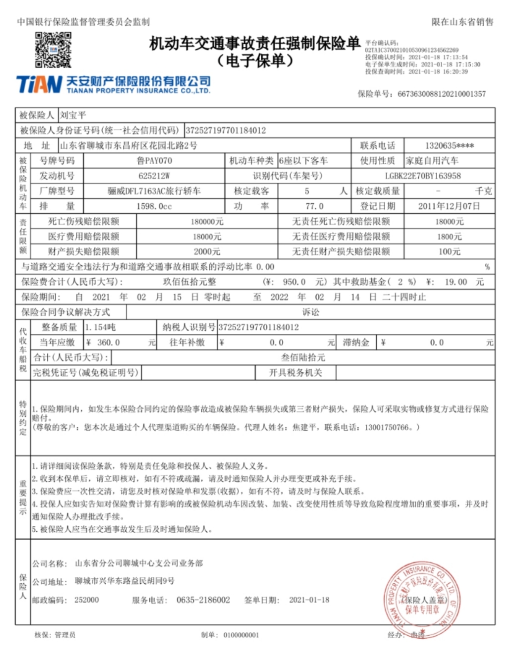 汽車保險||機(jī)動車交通事故責(zé)任強(qiáng)制保險單