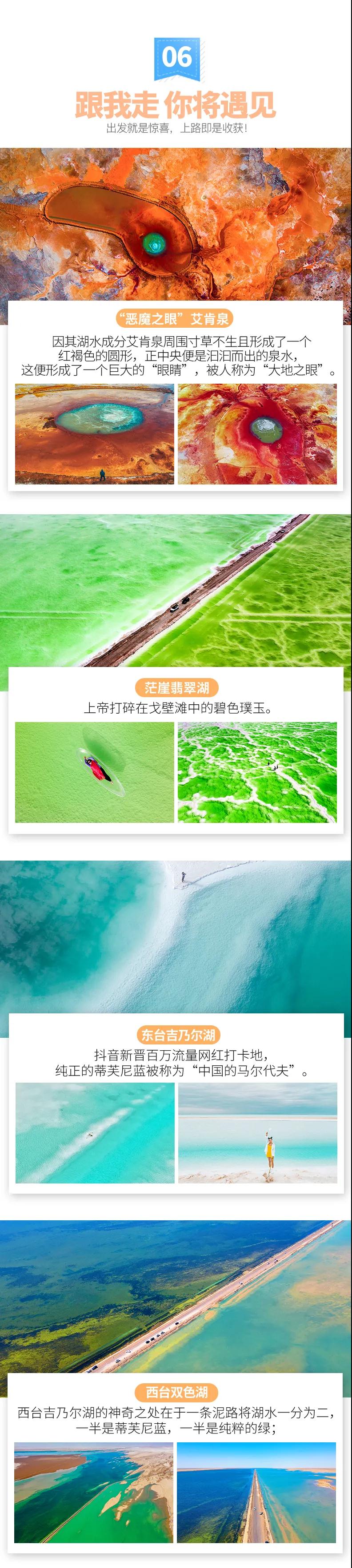 (5)茫崖翡翠湖、東/西臺(tái)吉乃爾湖、艾肯泉為小眾未開發(fā)景點(diǎn),往年不設(shè)門票,若今年收費(fèi)門票或環(huán)保費(fèi)由游客自理。